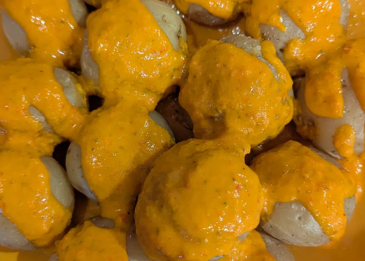 Les papas arrugadas, agrémentées de sauce mojo vert ou rouge sont un des plats emblématiques de la cuisine canarienne. A une époque pas si lointaine, où les îles manquaient d’eau douce les habitants faisaient cuire leur pomme de terre avec de l’eau de mer.